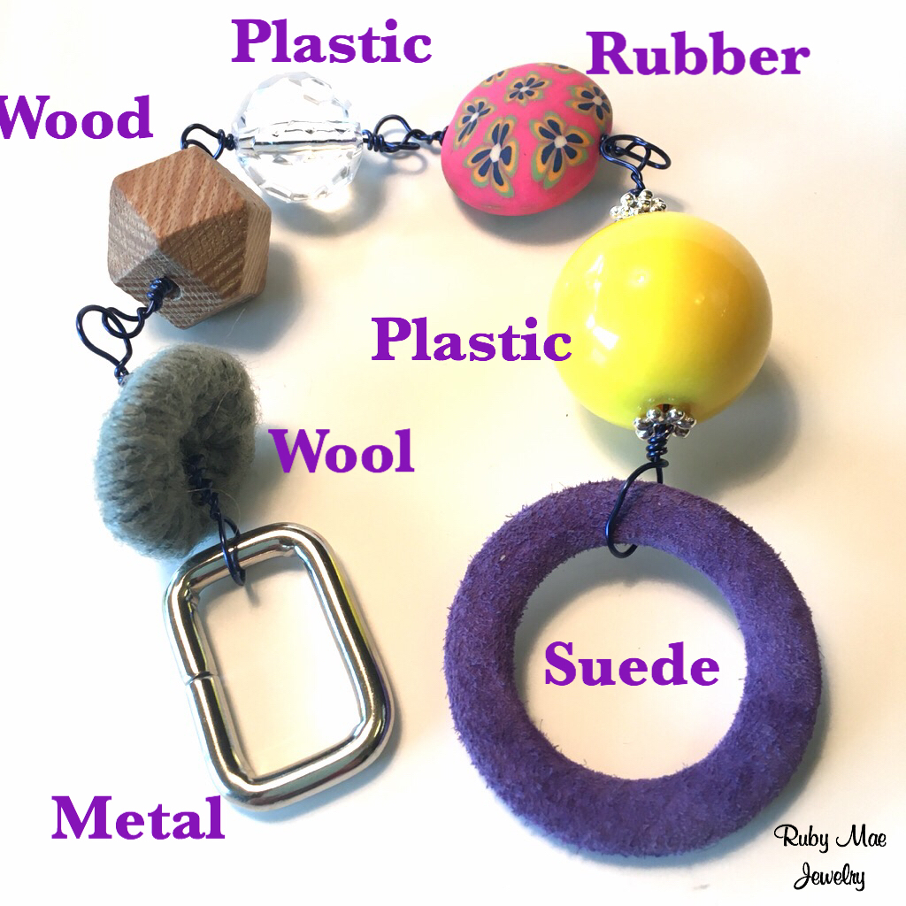 The inspiration for it came from my loved one. I noticed that she held onto my bracelet and played with it for a few hours. I wanted to offer her something more stimulating. I have a wide variety of beads and buckles in my workroom to choose from. I enjoy making them and no two are alike.