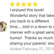 I enjoyed this book! Wonderful story that takes you back to a different time…..told in a down to earth manner with a great sense of humor! Thanks so much for sharing your parents’ story!
