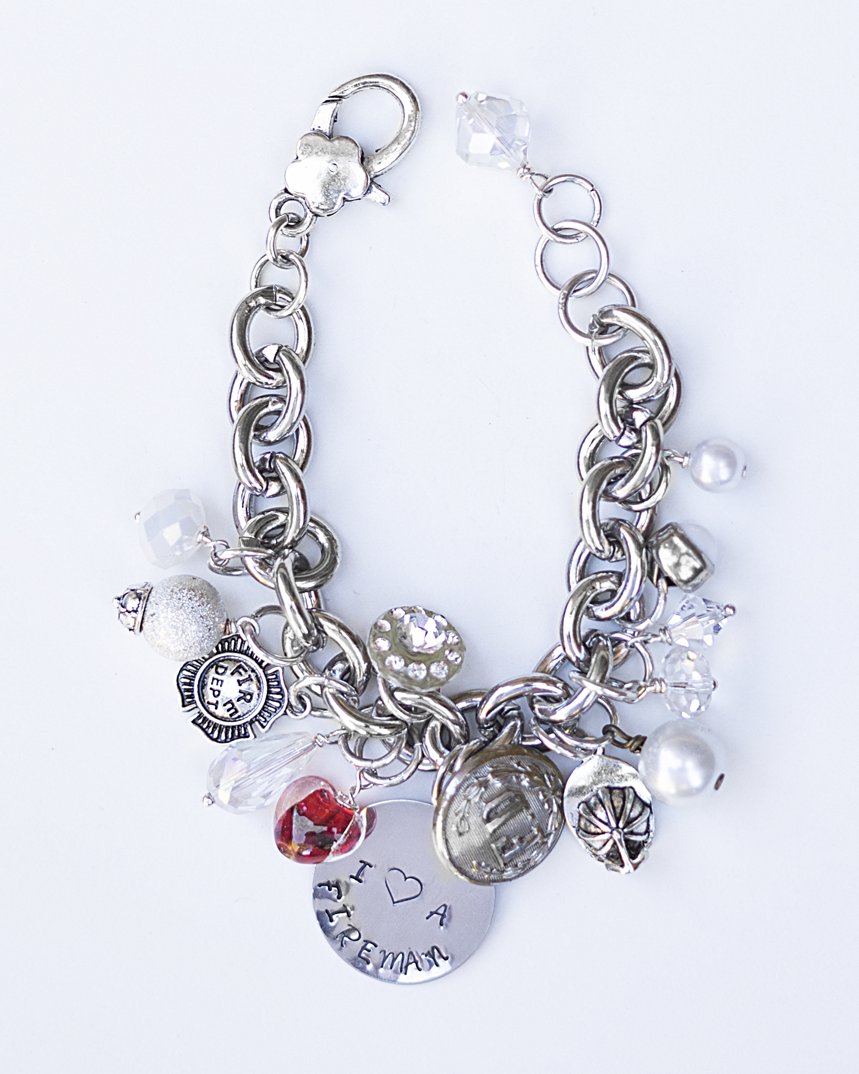 One of a kind I Love A Fireman Button & Charm Bracelet