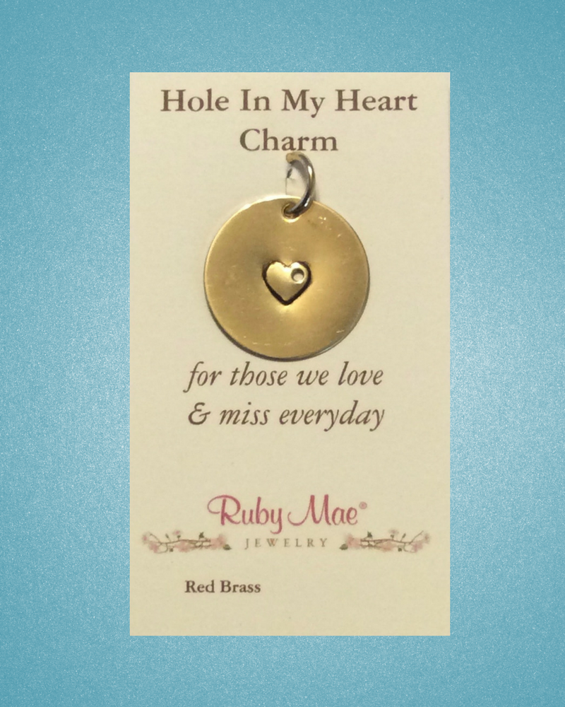 This charm was created by my dad Jake who misses my mom Patty Mae. He stamps, stains & polishes each one by hand. He thought there might be more people like him who have a hole in their heart.